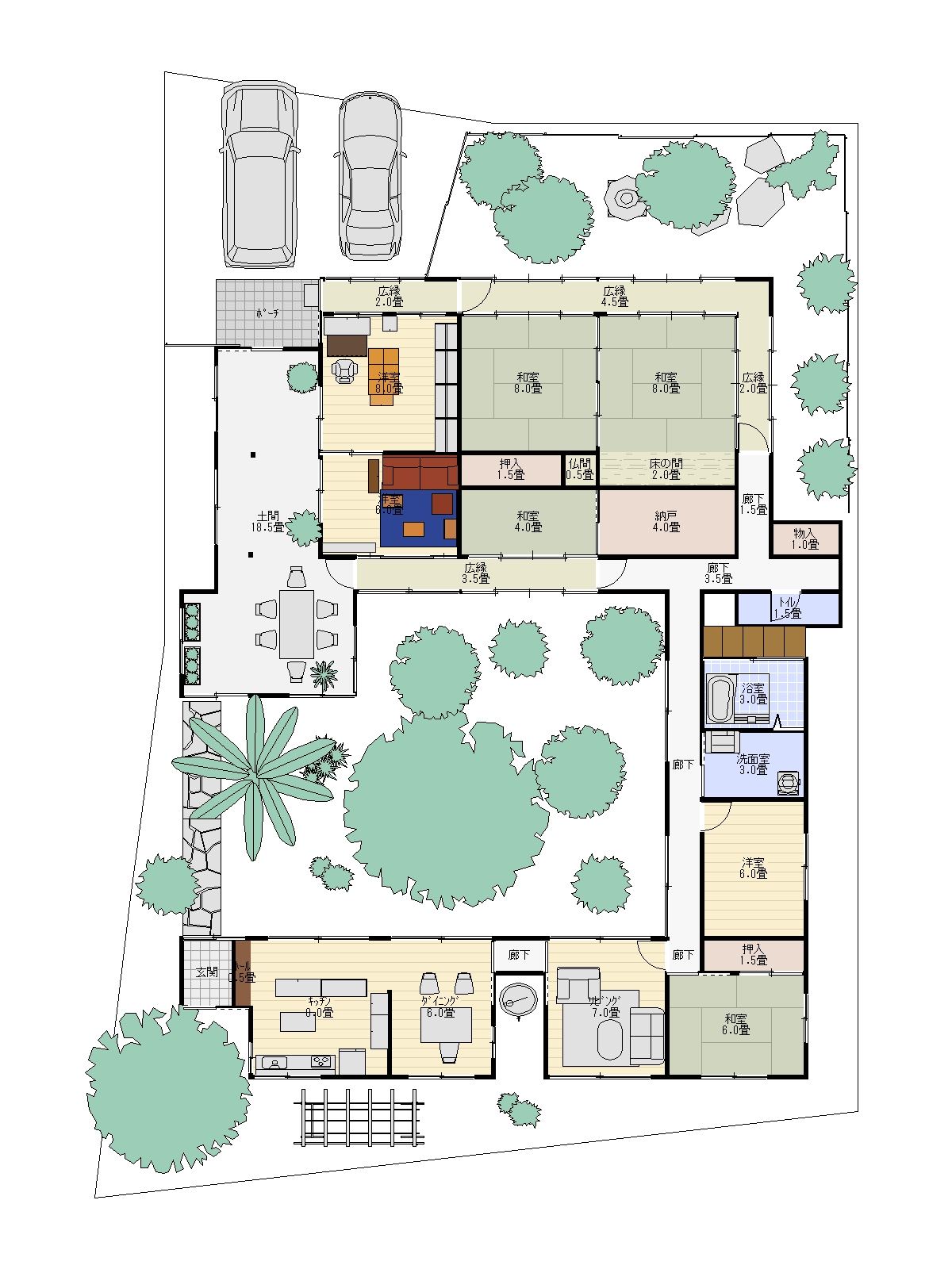 純和風の落ち着きある平屋今井建設の設計プラン集。
