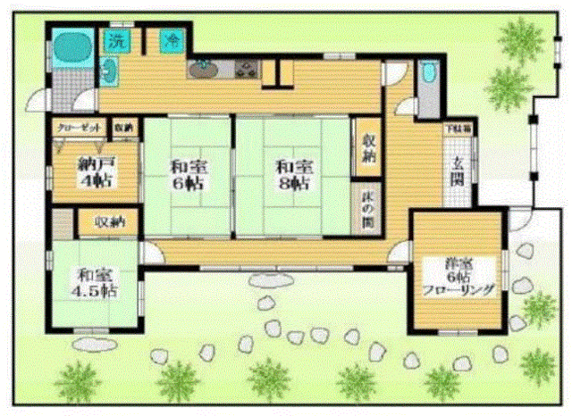 二間続きの和室がある純和風住宅の間取りプラン白井市で30坪台の間取りで平屋・2階建て注文住宅は神野工務店。