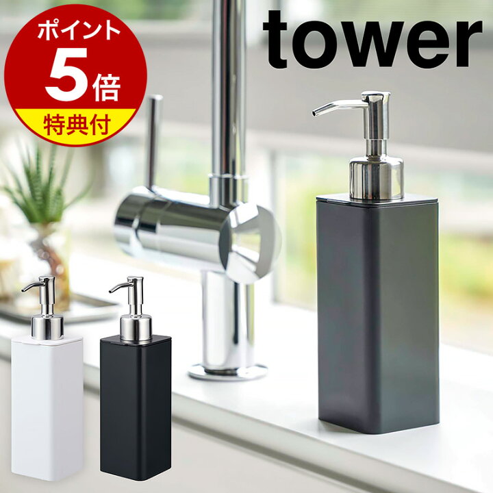 特典付き詰め替え用キッチンディスペンサー タワー山崎実業 tower キッチン ディスペンサー おしゃれ ハンドソープ 詰め替えボトルハンドソープボトル 液体 石けん 洗剤 詰め替え シンプル 洗面所 yamazaki ホワイト ブラック 4829 4830 ポイント5倍公式。
