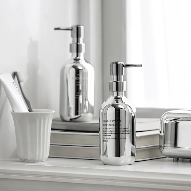 ソープディスペンサー バスルーム キッチン ソープディスペンサー レトロ ローション プレス ボトル ハンドソープディスペンサー シ Silverbottle 500ml 文字色2色 シルバー色ソープディスペンサー キッチンキッチン用品 シャンプー 洗剤 ボトル 収納 ハンドソープ。