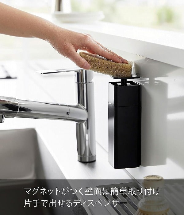 片手で出せるマグネットディスペンサー タワー山崎実業 tower 洗剤 ディスペンサー 磁石 片手 詰め替えボトル 洗剤ボトル 食器用洗剤 容器浮かせて収納 北欧 おしゃれ モノトーン yamazaki ブラック ホワイト 3679 3680 送料無料57-36シリーズ別,TOWER。