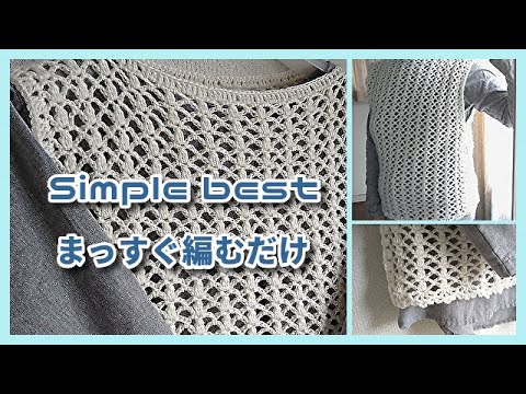簡単透かし編みベスト◆まっすぐ編むだけ!◆ダイソー・ポリエステルヤーン。