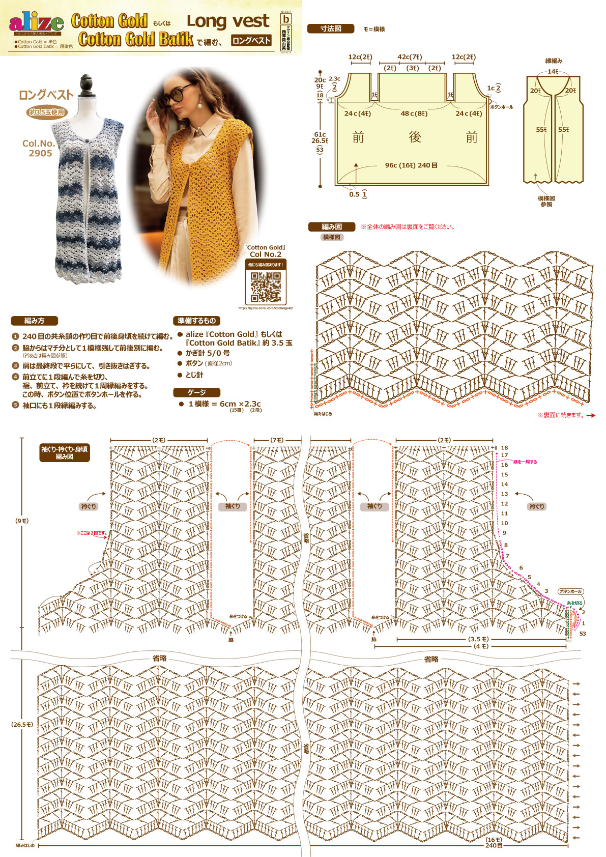 無料編み図かぎ針 ロングベスト の 編み図寺井株式会社。