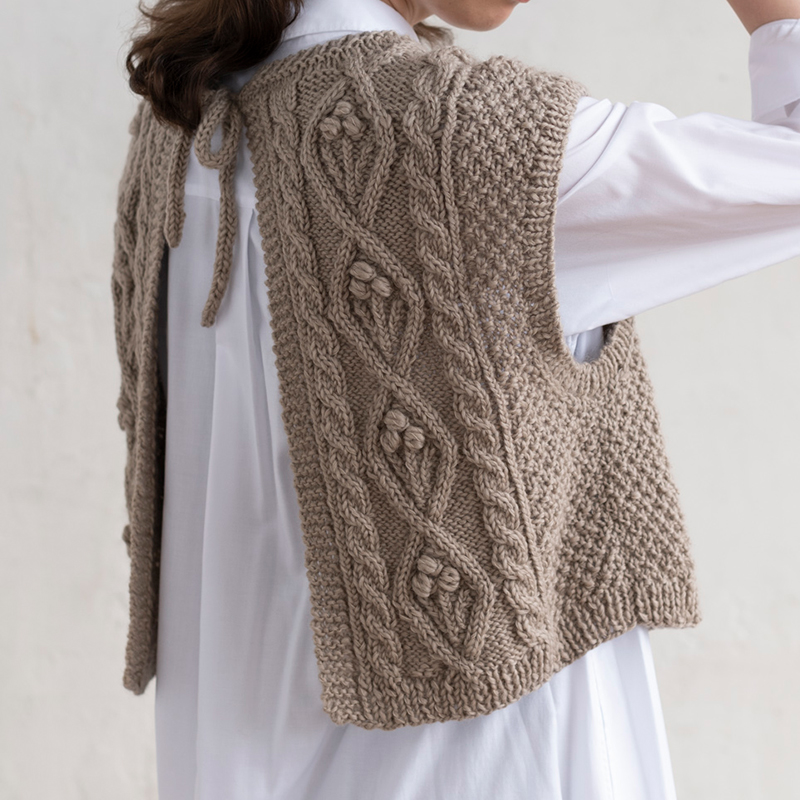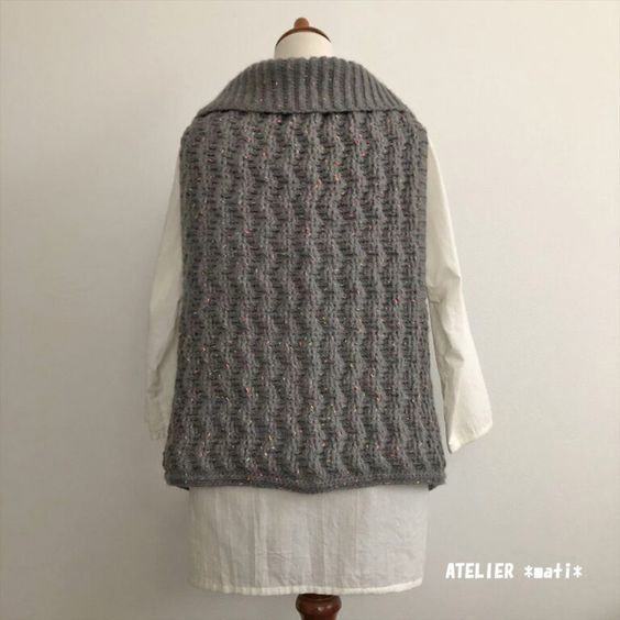 かぎ針編み図 かぎ針アランで編むベスト – 手編みウェア&雑貨の無料編み図 ATELIER *mati*。