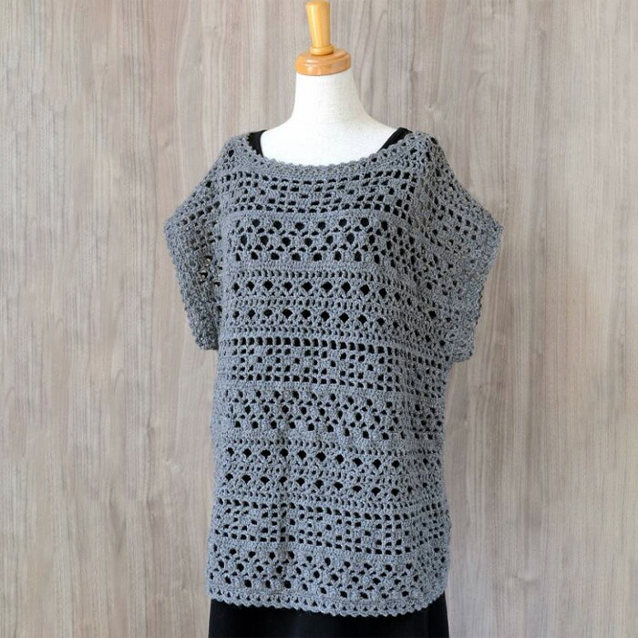 ダウンロード編み図:PDFデータかぎ針編み メッシュベストKiiTEEKiiTE。