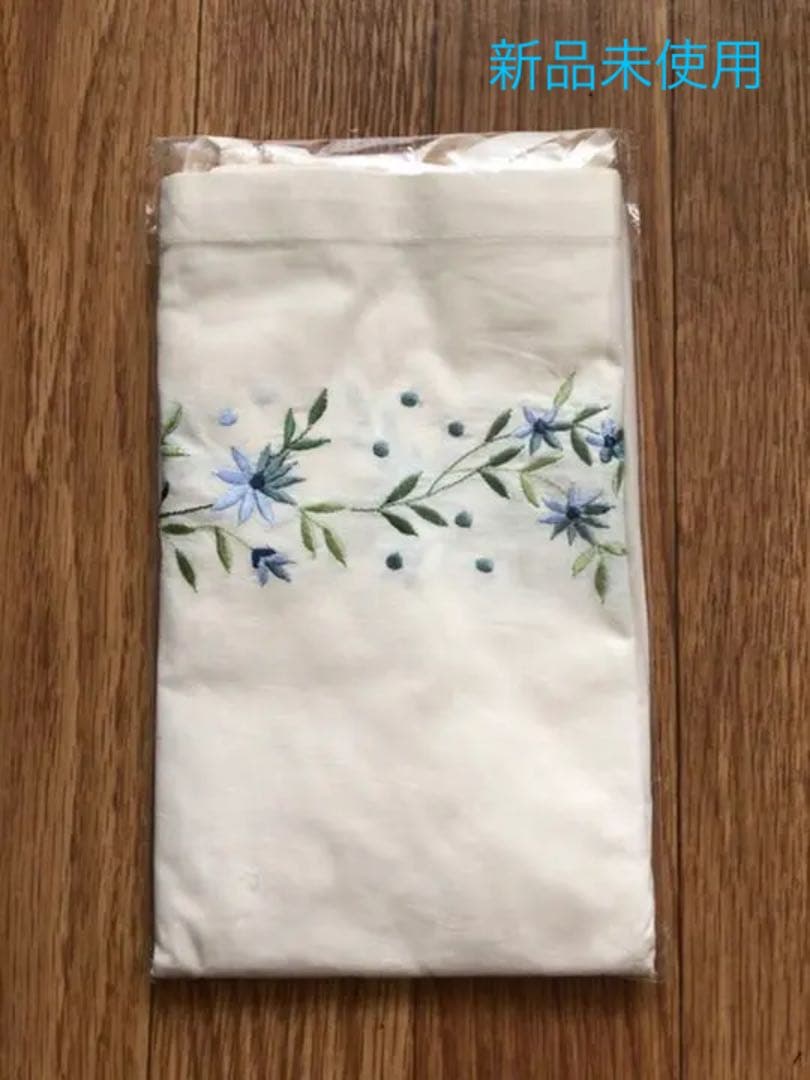 カフェカーテン 刺繍入り 青い花 カーテン。