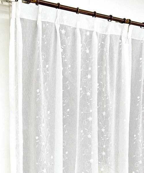 カーテン レース ボイル ホワイト色 花柄 刺繍入り コフレ - おしゃれ アジアン カーテンの通販 テレマカシイ。