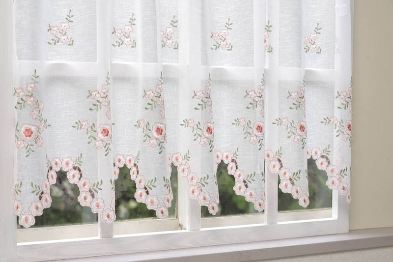 フラワー刺繍 カフェカーテン 約130×90cmアミブルージュインテリアレース・うさぎ雑貨・刺繍とキルトのお店。