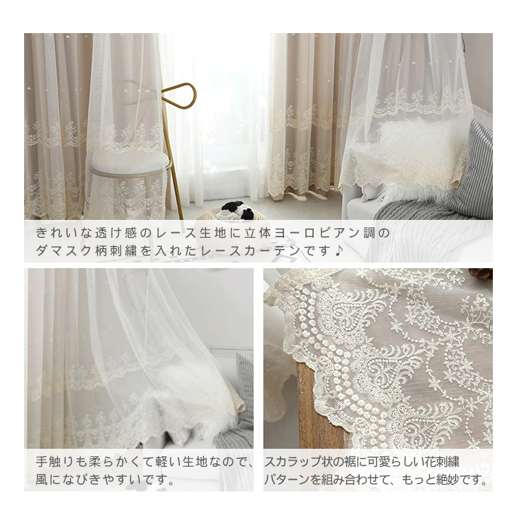 2枚組 レースカーテン 刺繍 サロン 店 ルーム カーテン おしゃれ 花柄 安 2枚。