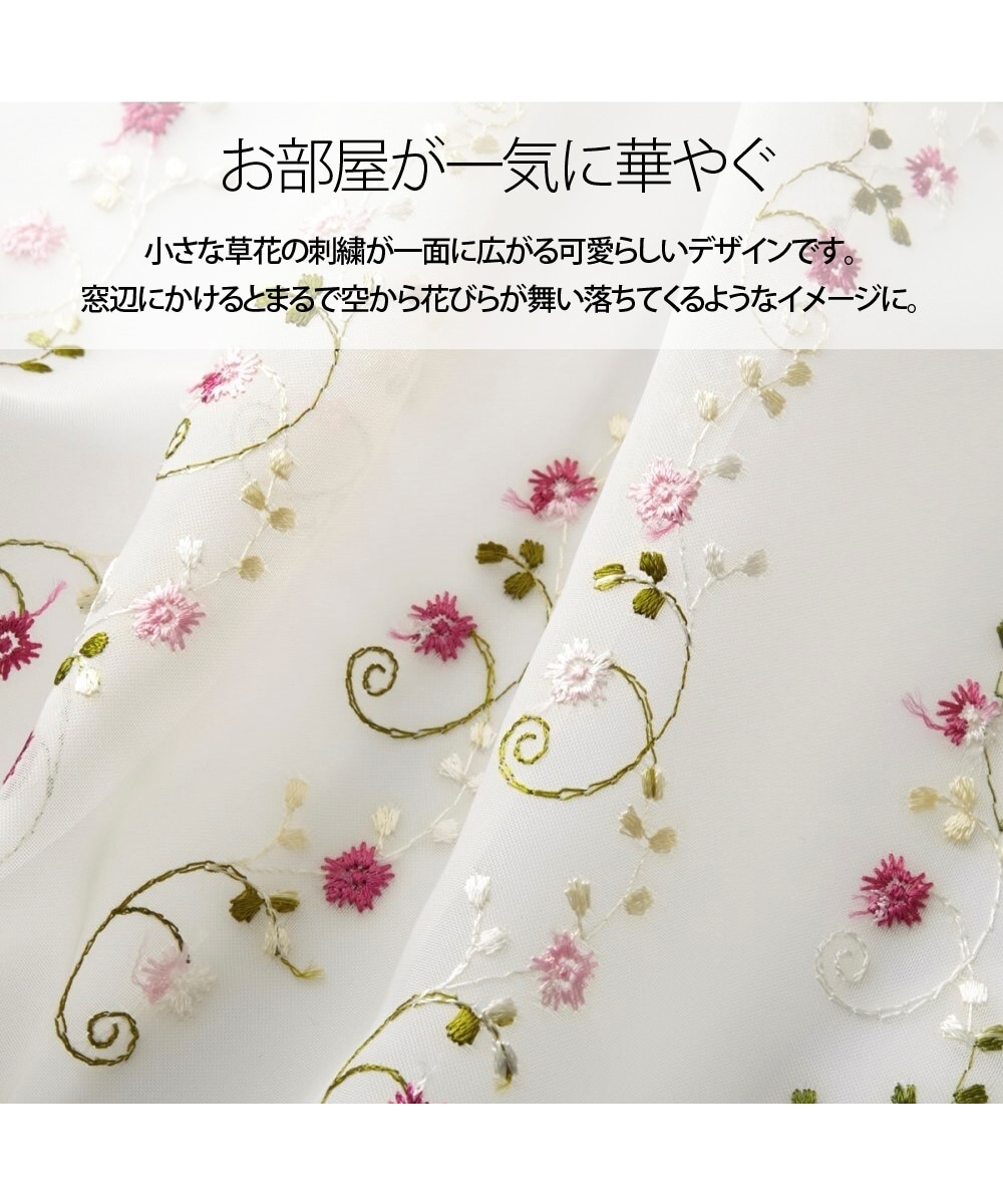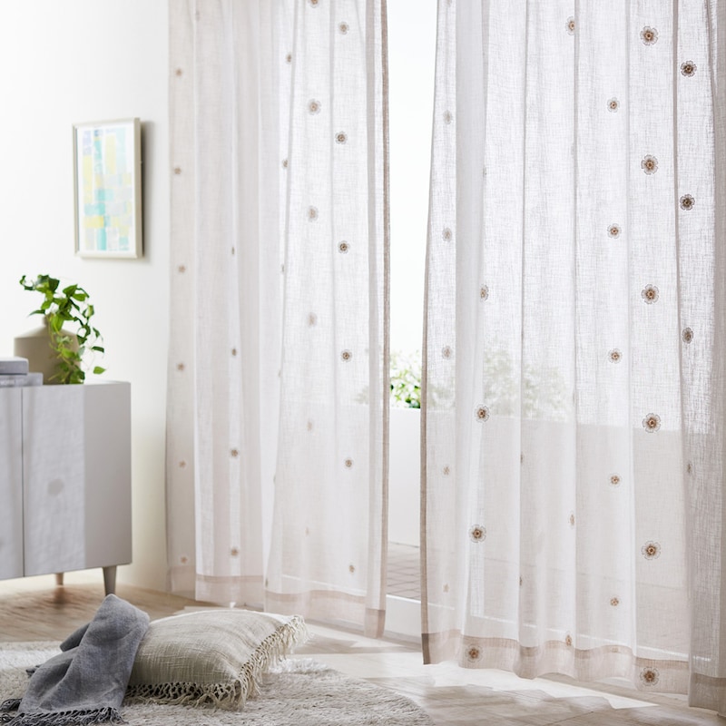 99サイズ ワッペンのようなお花が散りばめられた刺繍レースカーテン<2枚組 1枚>通販のベルメゾンネット。