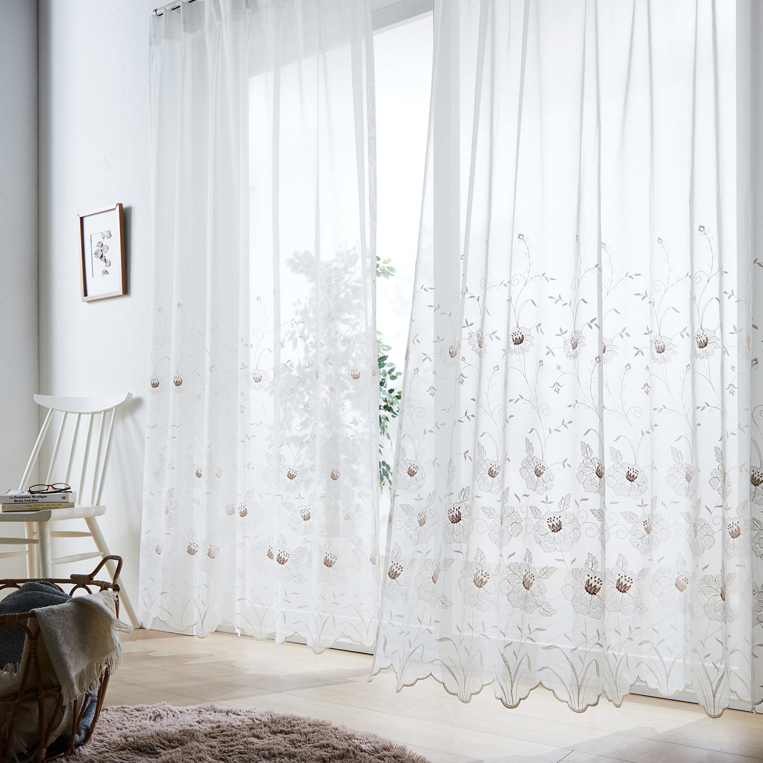 シアーカーテン レースカーテン サイズオーダー 刺繍 花柄 ポリエステル 1枚。