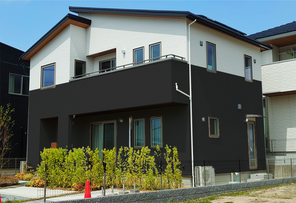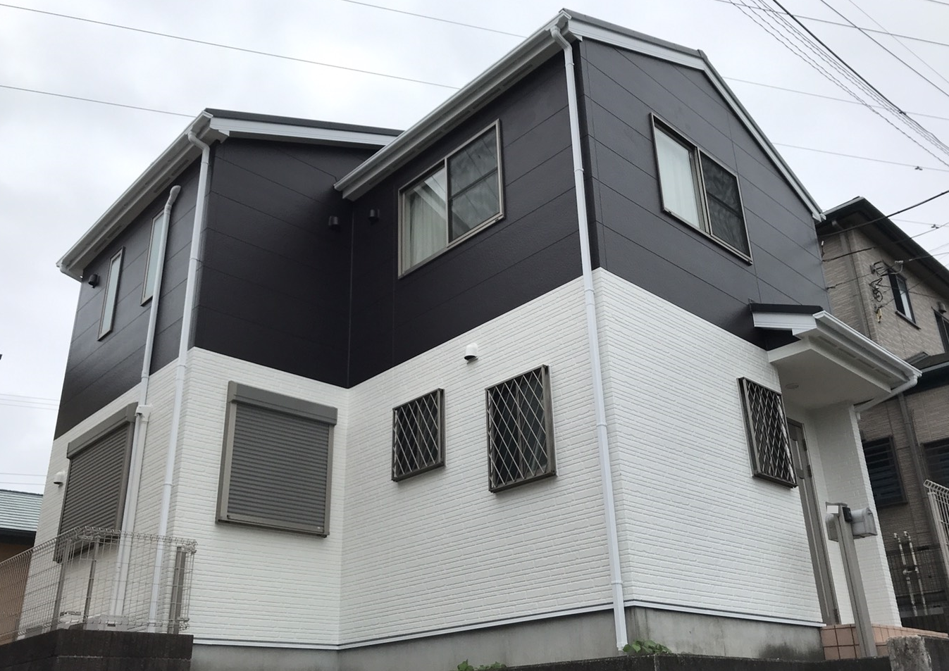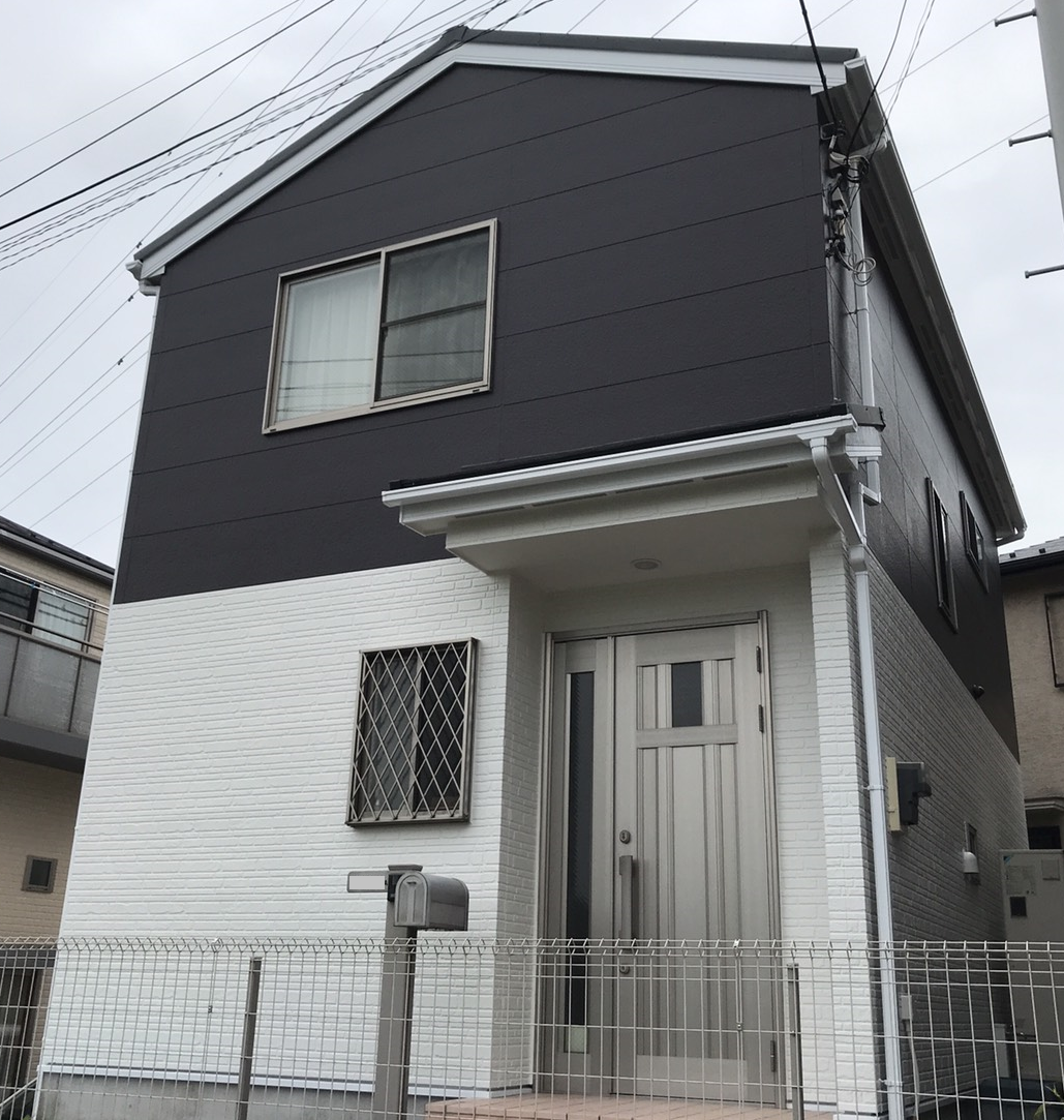 白黒のモノトーン調のツートンカラーで色分けしたシックな外壁塗装 長久手市 :施工事例名古屋市で外壁塗装、屋根塗装なら東海工芸施工実績8000棟。