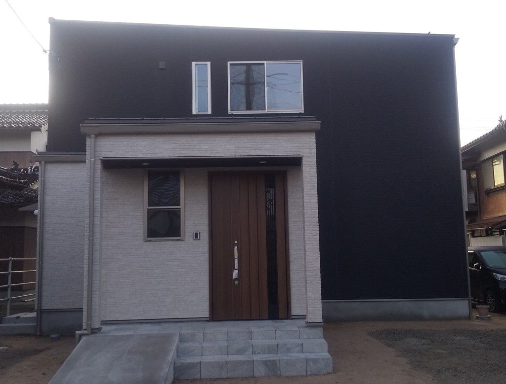 黒と白のツートンカラーのシンプルな外観滋賀県長浜市大戌亥町 ノブワークス株式会社。