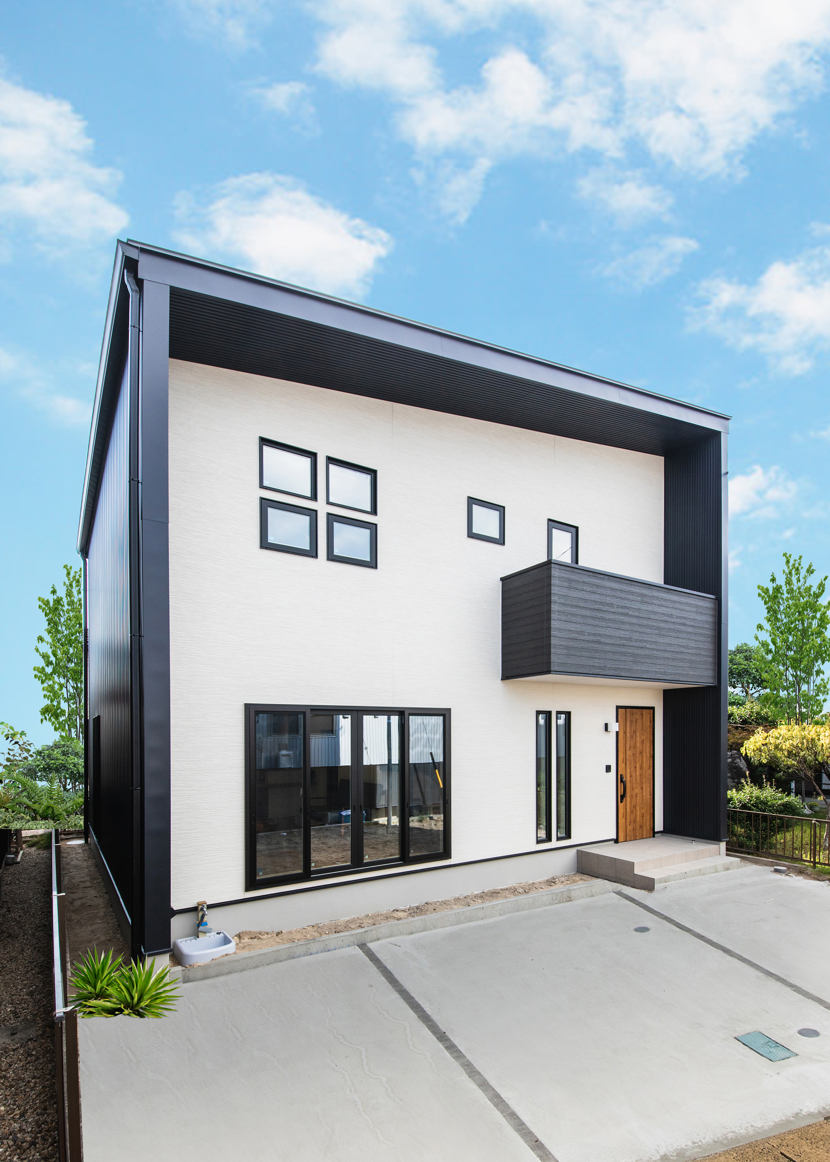 モダン住宅 -つくば市 Y様邸新築注文住宅:白と黒が対照的な「シンプルモダンの家」。