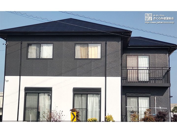 白黒のツートンカラーがよりスタイリッシュな印象に演出してくれる外壁塗装さくら外壁塗装店 外壁塗装リフォーム工事専門店。