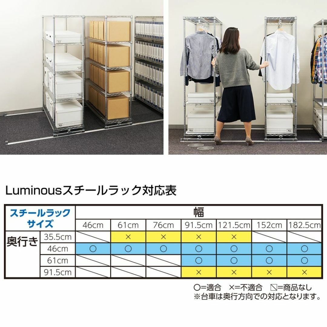 ラック用台車 奥行46cm対応 スライドレールユニット ルミナス スチールラック パーツ LR-45ルミナスクラブショップ。