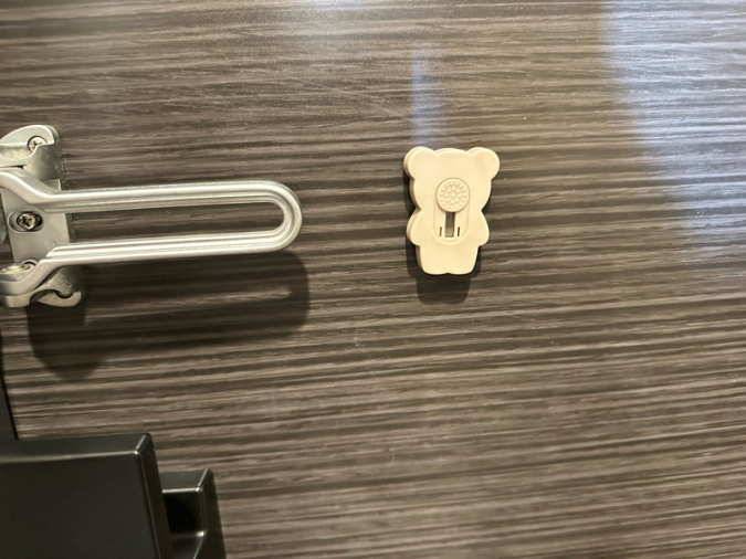 ダイソーのワンタッチドアストッパーにネオジム磁石を接着して玄関ドアに設置しましたPEACE BIRD。