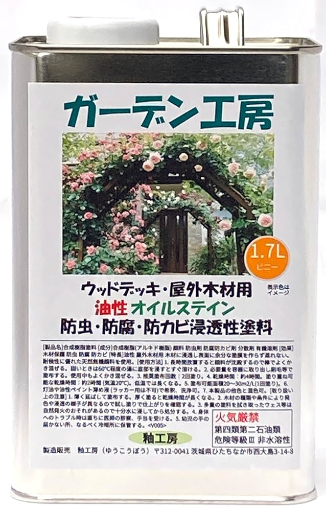Amazonガーデン工房 ウッドデッキ 等 屋外 木部保護 用 オイルステイン 油性 塗料ピニー, 1Lステイン。