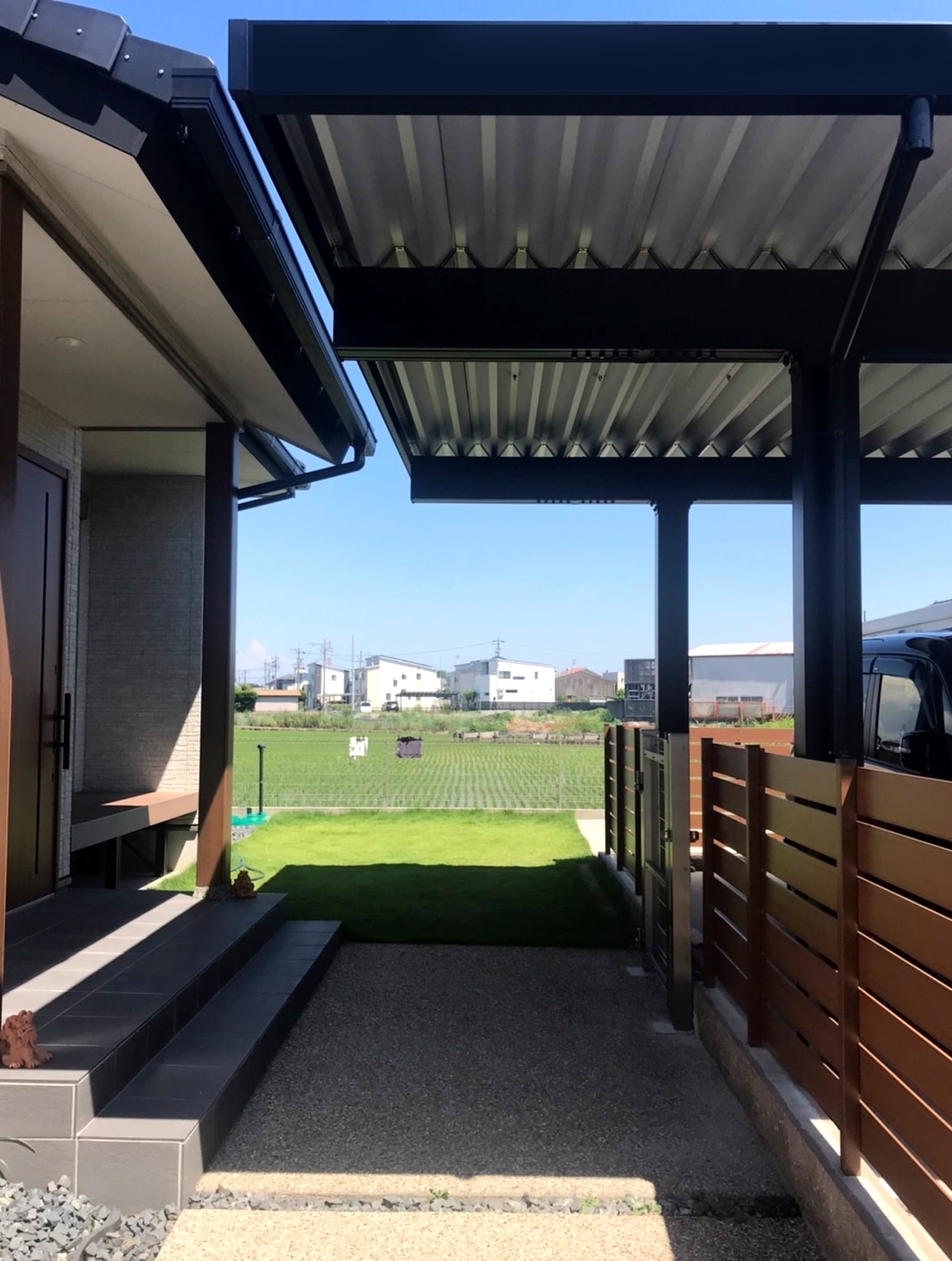 存在感のあるカーポート&屋根テラスで、快適なお庭廻りを実現 浜松市S.J様邸 2024年施工 浜松東店 - 施工事例 - まろうど。