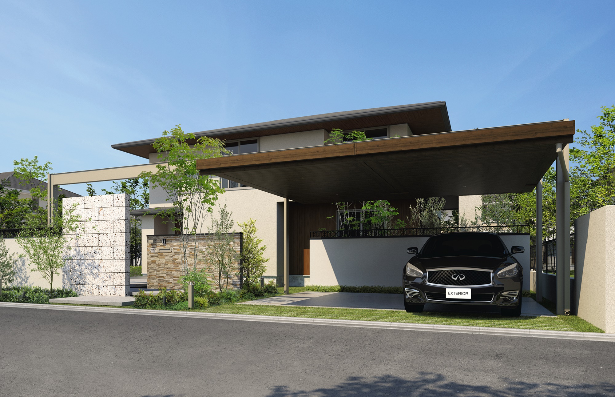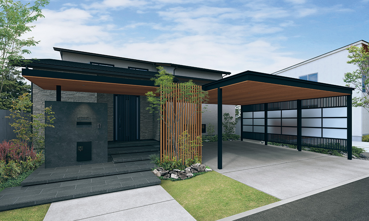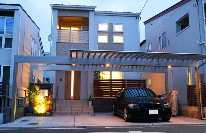 カーポートで玄関前までつなぐ!車からお家まで傘いらず、ホテルライクな暮らしを実現するテクニック庭ファン。