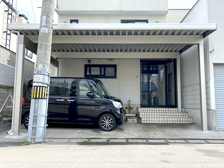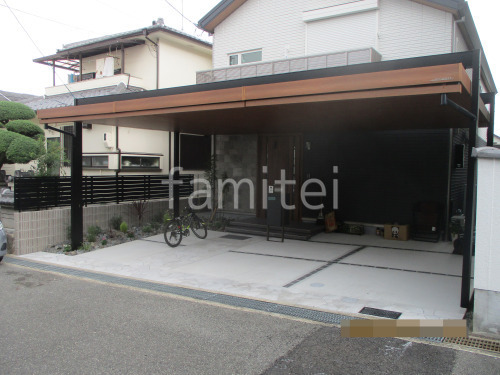 玄関先を全面カーポートに大西アルミ建材 京丹後店京丹後市窓・玄関ドア・エクステリアリフォームのプロショップ。