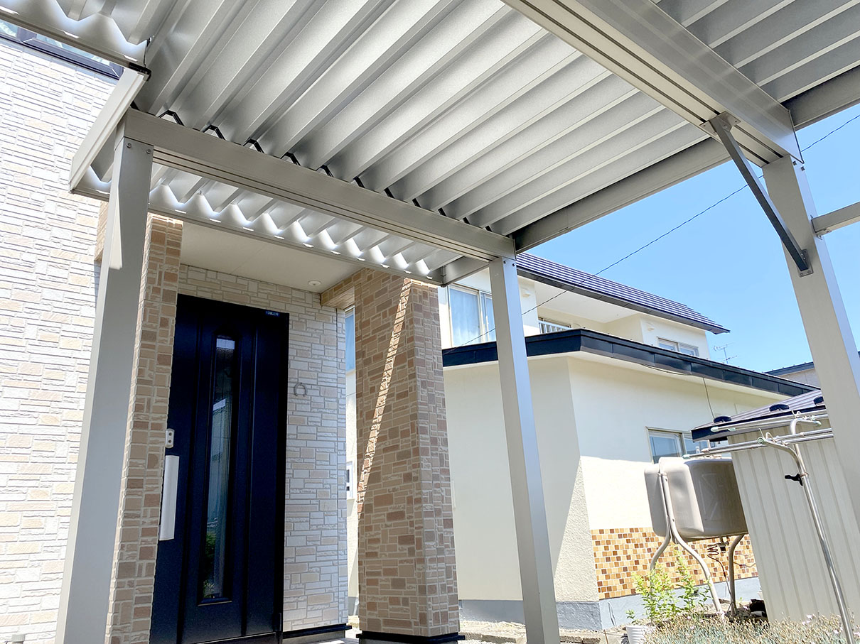 駐車しにくくならないよう、玄関前と駐車スペースに屋根を付けたいリフォーム事例Nissho。