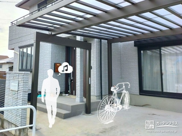 プラスGカーポートSC雨の日に玄関まで濡れないプラン目隠しスクリーン栗東市大阪・神戸外構・エクステリアエクセル。