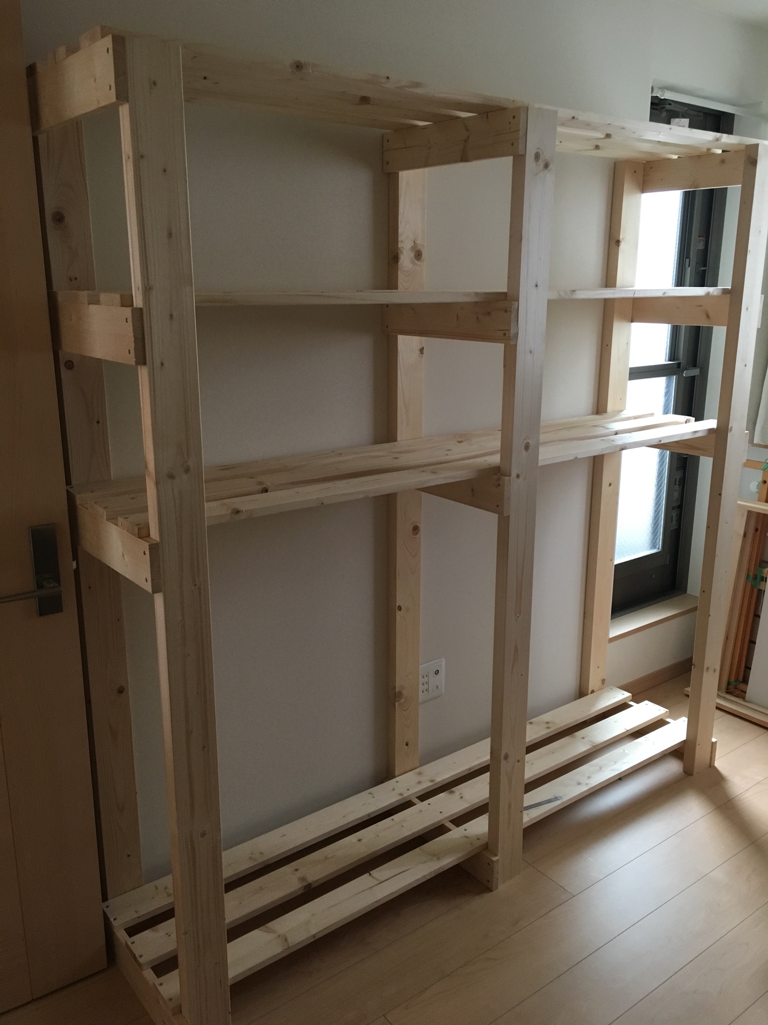 納戸の棚を安価な2×4ひのき材のDIYで作るsokico ものつくり blog。