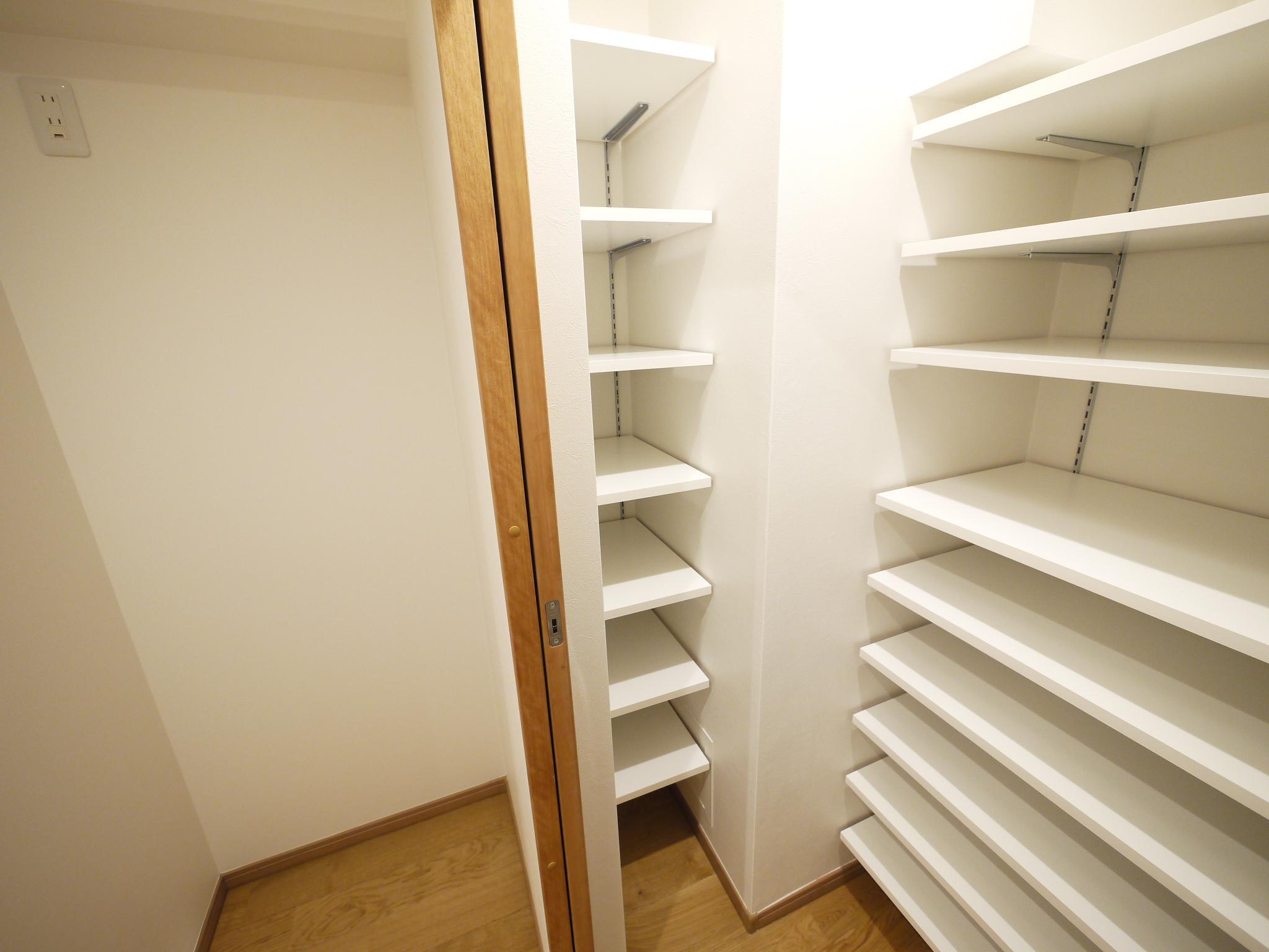 2枚目パントリー兼納戸 隠れた可動収納棚がたくさんある家- 収納事例SUVACO スバコ。