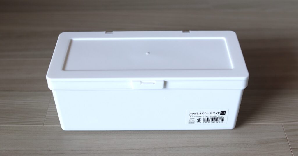 100均「フタ付きケース ロング クリア」の商品情報とサイズ・収納例。セリアで販売 4977425201847。