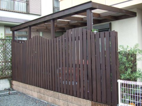 庭にテラス屋根付きのウッドデッキを設置、木製フェンスでおしゃれに演出武蔵野市・小平市のリフォームならCLOVERHOME 株式会社クローバーホーム。