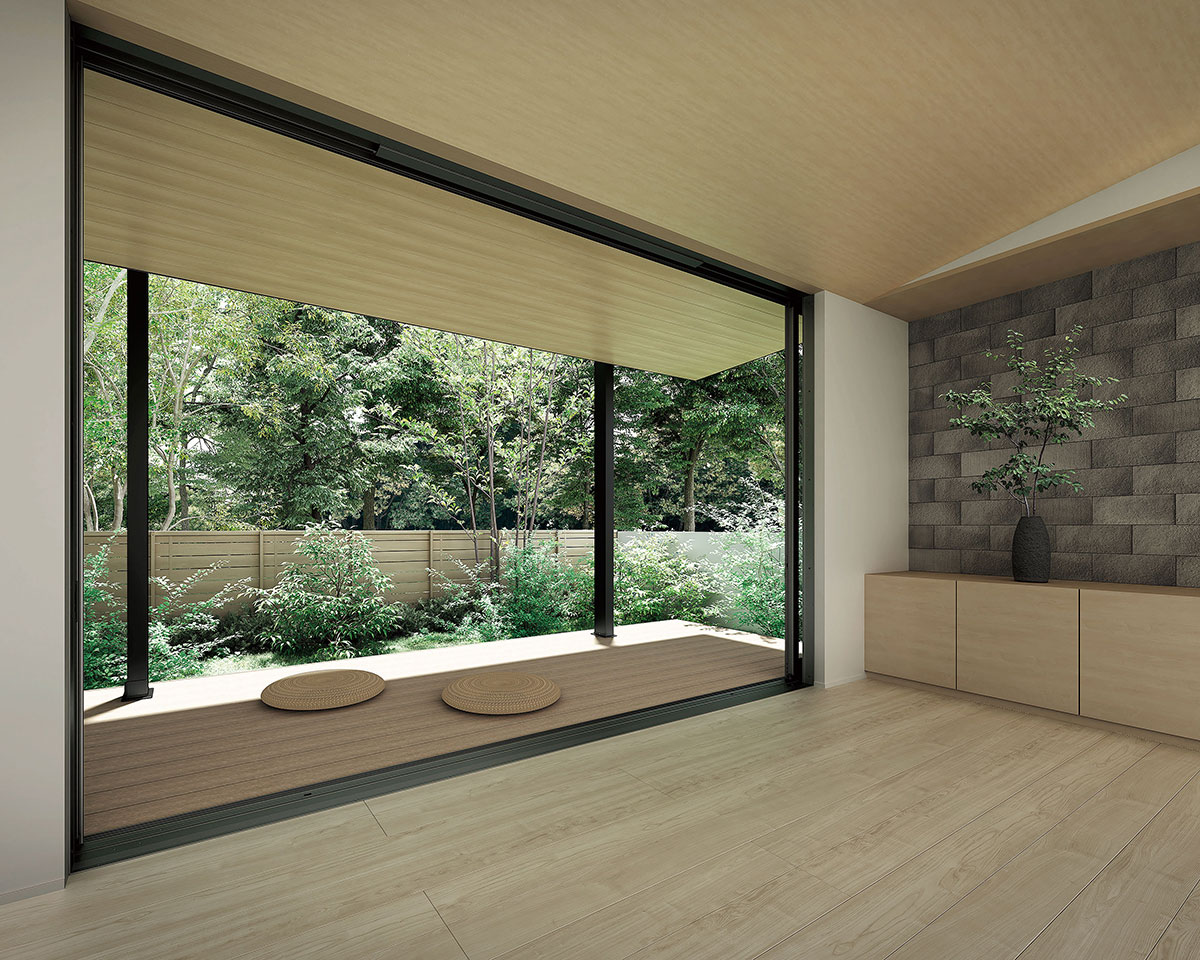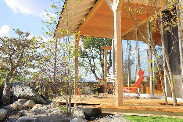 お庭で寛ぐ屋根付きウッドデッキ – エクステリア製品 SBIC エスビック株式会社。