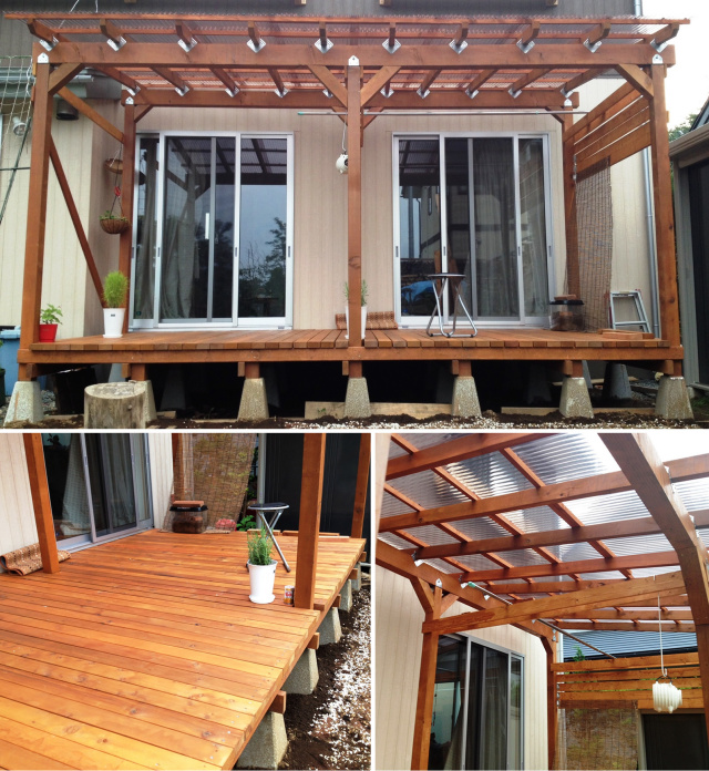 4 お客様DIY事例♪パーゴラ屋根付きイタウバのDIYウッドデッキブログウッドデッキ材の販売ならウッドデッキ通販のDecks デックス。