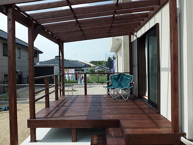 ウッドデッキは屋根付きがオススメ?後付けのメリット・デメリットや費用についてもご紹介群馬県利根郡の外構工事やエクステリア工事は株式会社天照へ。