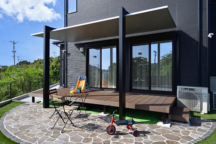 福岡県大野城市 N様邸 ウッドデッキ・テラス屋根施工例エクステリアデザイン福岡・佐賀の外構・エクステリア・ガーデニングは太陽ハウジングへ。