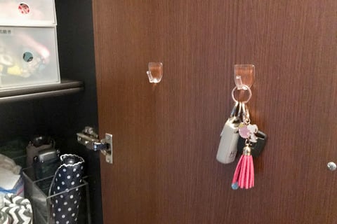 ダイソー たった200円で解決!「移動できるフック」で玄関のカギ置き場が一発すっきり♪収納術や整理整頓のアイデア暮らしニスタ。