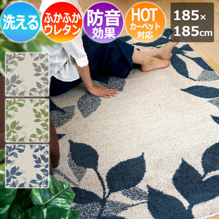 洗える夏用 洗える 北欧 リーフ柄 ナチュラル グレー カーペット 2畳 約180×180cm 訳あり 送料無料 洗濯機で丸洗いOK!洗えるタフト織り! 北欧風リーフ柄ラグ シャルム 約185×185cm 2畳ラグ カーペット 洗える 防音 裏面 滑り止め付き 床暖房・ホットカーペット対応。