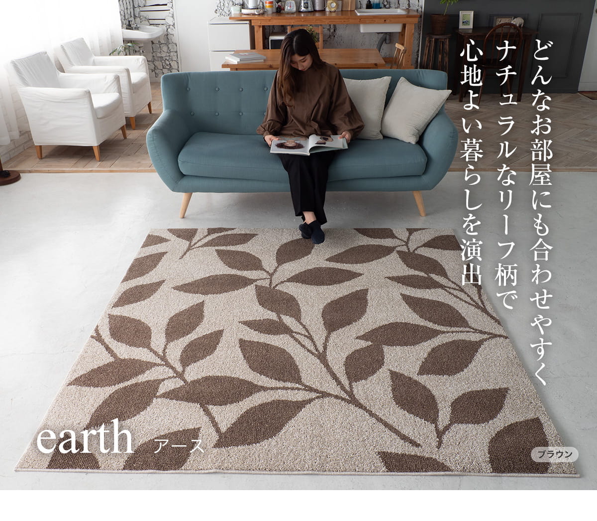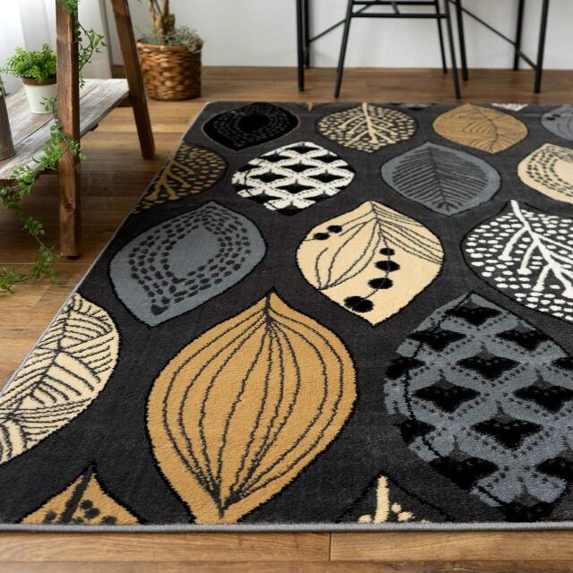 アースカラーの大きなリーフ柄がおしゃれ!防音タイプラグ『RIM リム』 – ラグ専門店 カーペットマート 公式。