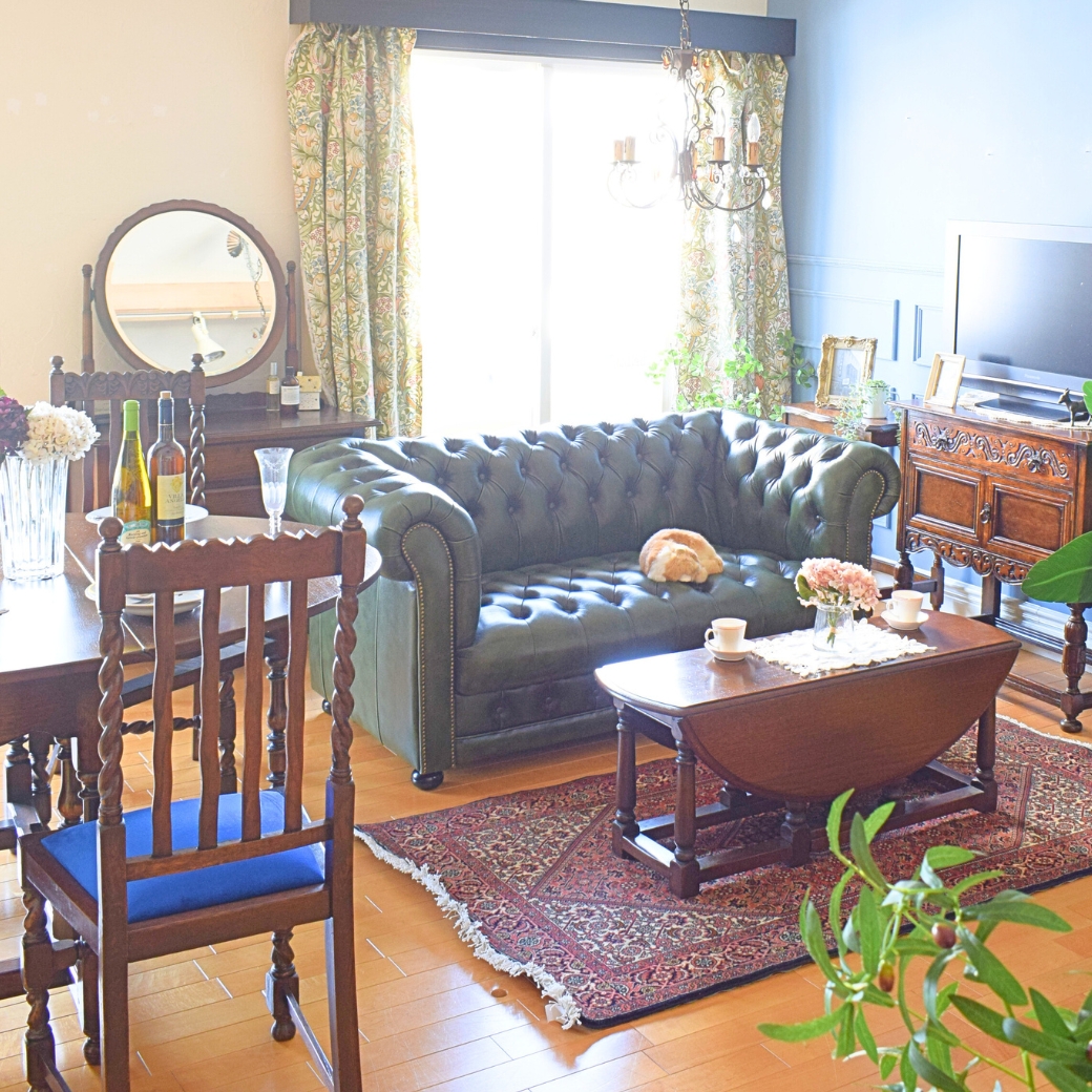 アンティーク家具と調和するリビング アンティーク家具が似合う部屋- リビングダイニング事例SUVACO スバコ。