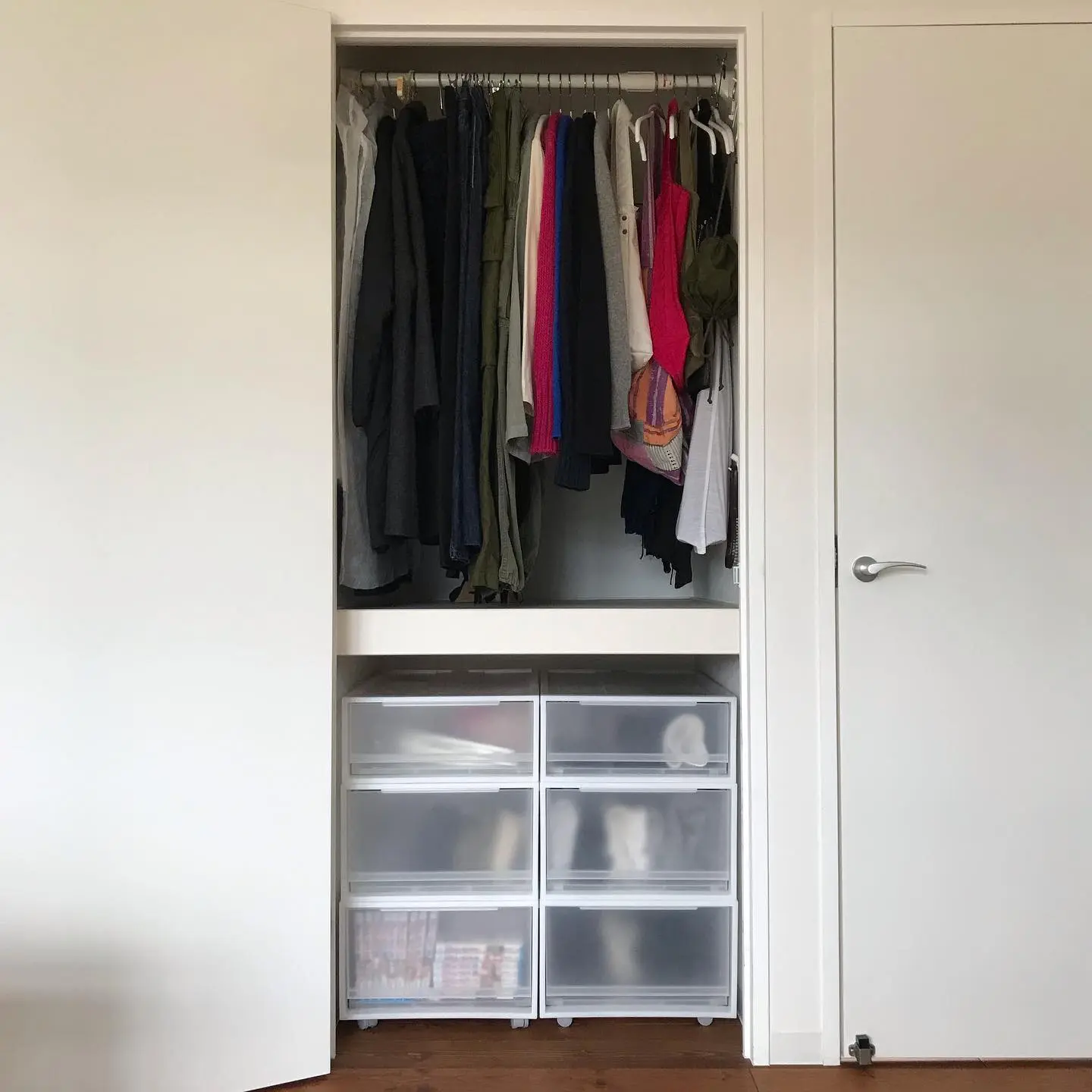 服超大量収納 ごく普通の6畳寝室に服600着を収納する最強クローゼット収納!!プチプラのみでできる!ウォークインクローゼットなし 一人暮らし必見ニトリとIKEAのみ!。