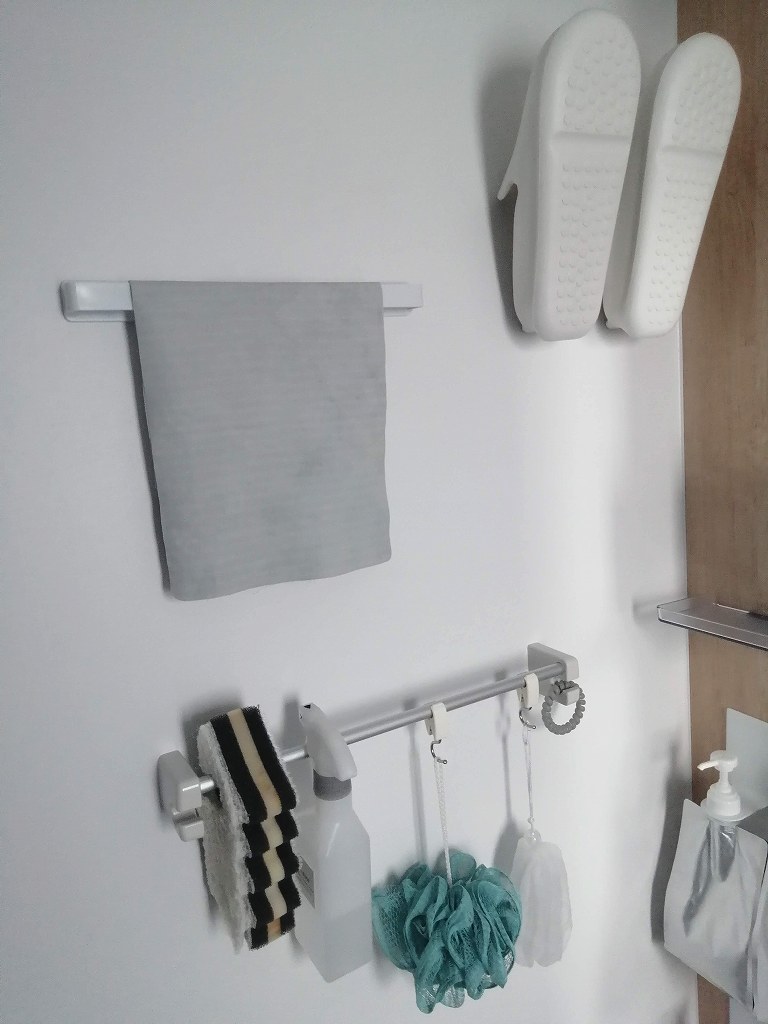 お風呂ブーツ収納なら セリア のステンレス2WAYホルダーが機能的かつ見た目スッキリでおススメ。 - さよのシンプルライフブログ。