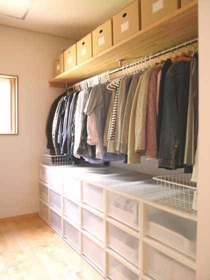 ウォークインクローゼット - 無印良品の家にお住まいの方の収納事情。無印良品の家無印良品無印木の家窓の家収納アイデアウォークインクローゼット収納ウォークインクローゼットクローゼット収納クローゼット整理クローゼット収納術服のしまい方。