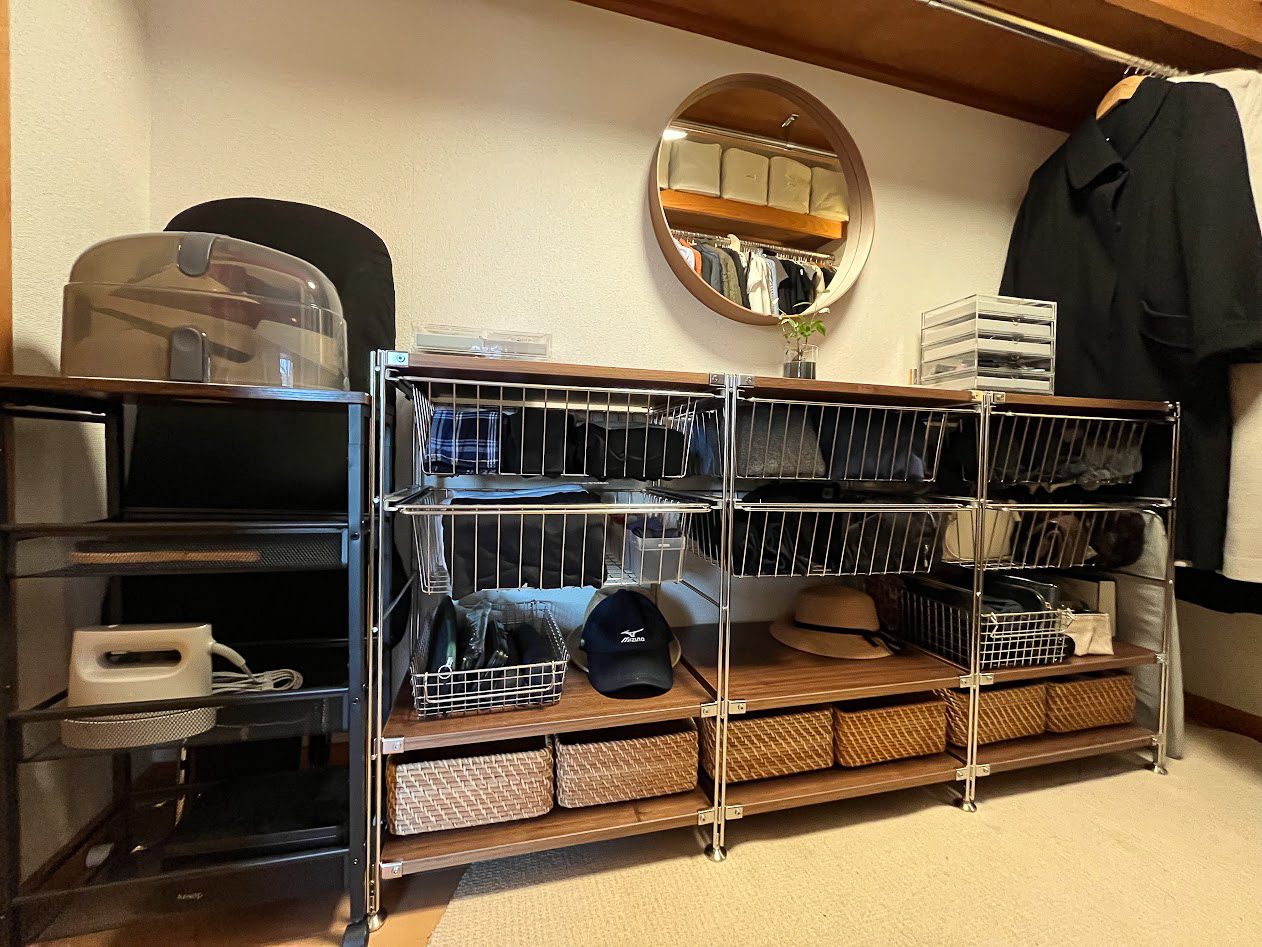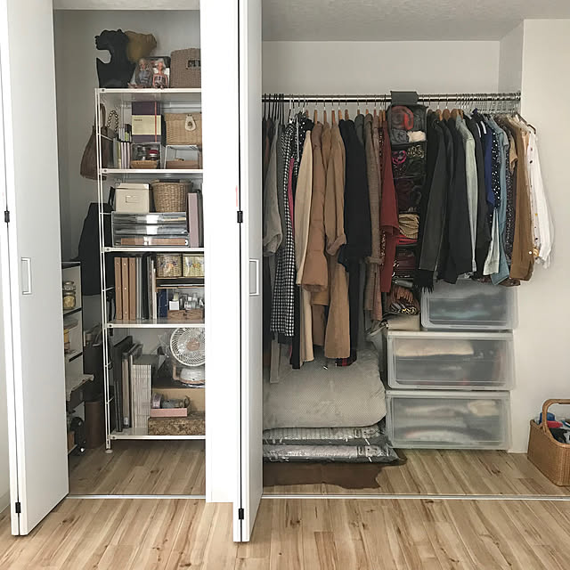 ウォークインクローゼットは無印良品のスチールユニットシェルフワードローブとバンカーズボックスの組み合わせがお気に入り – ブランクハウス。