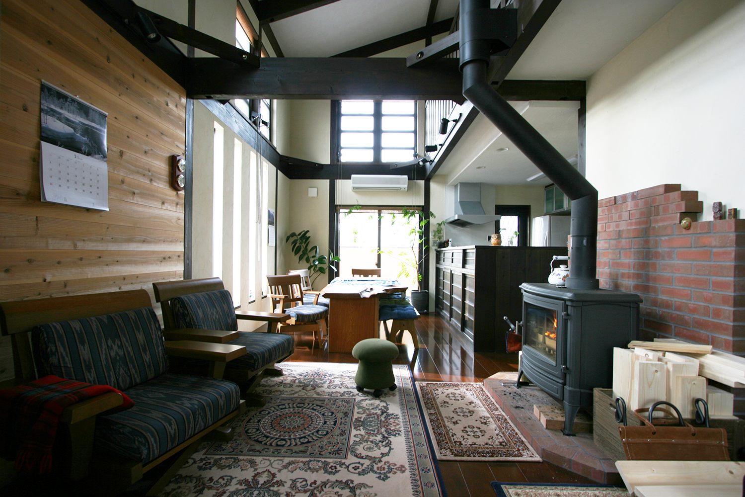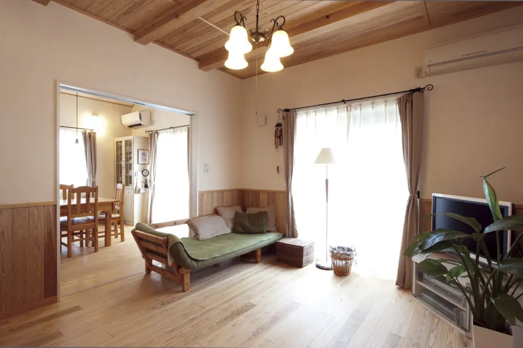 ログハウス風の自然を感じる広い空間にリフォーム船橋市の工務店ならみくに建築へ 天然素材や太陽光など自然のよさを生かした住宅が得意です。