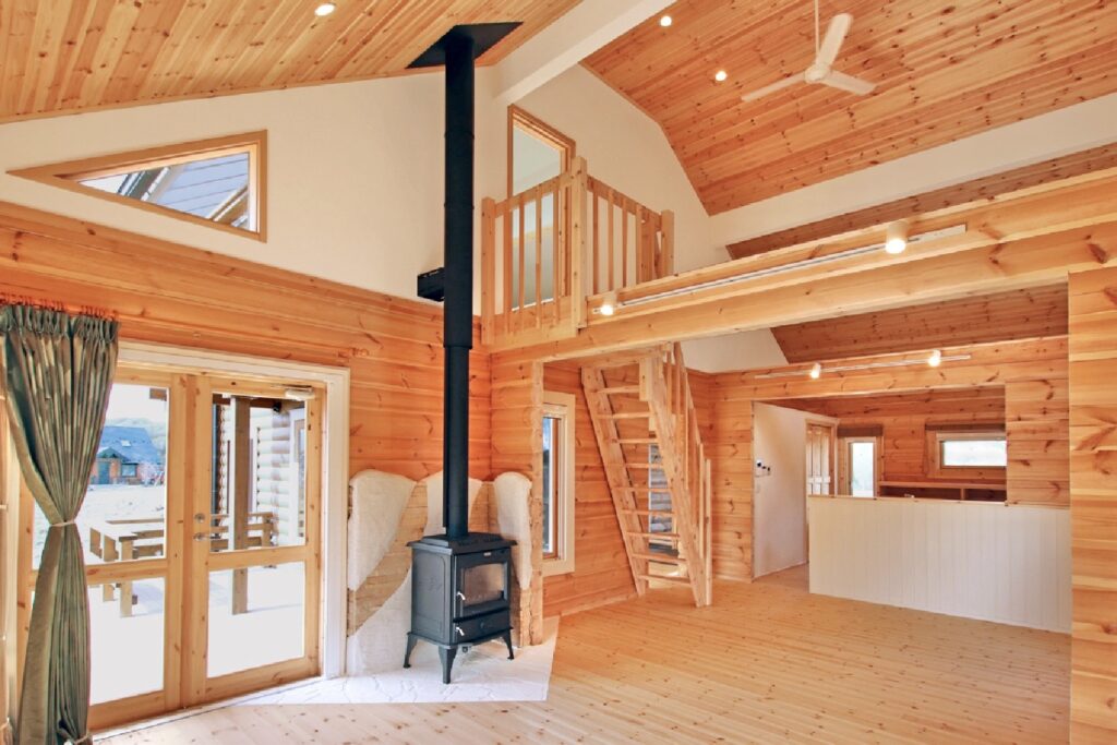 無垢材の内装が家族の心と身体の健康を守るログハウス風住宅高性能なデザイナー住宅を低価格で建てるならA-1home。