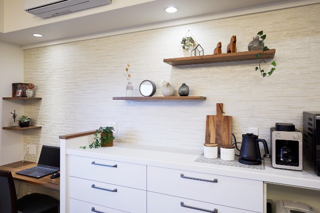 キッチン背面ウォールシェルフでおしゃれ収納!新築実例5選スタッフブログ浜松市で自然素材の注文住宅を建てるならほっと住まいる。