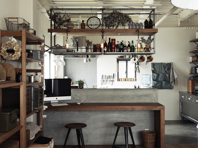 カフェ風インテリアで大人気。キッチン吊り棚 のアイデア集JOURNAL-インテリアのアイデア集名古屋・東京・埼玉でリノベーション・店舗デザインをするならエイトデザイン。