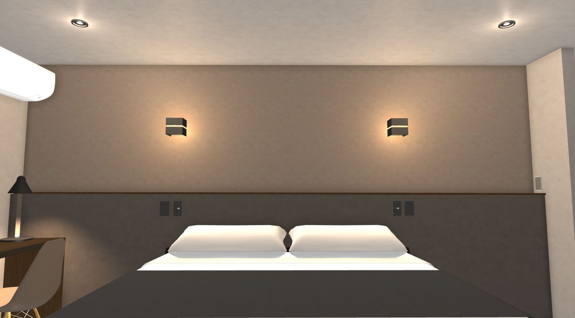 寝室について。 寝室のふかし壁の高さやブラケットライトの位置についてお問い合わせを頂くことが増えてきたのでここにも書いておきます🛌 ふかし壁は、高さ110cm、奥行20cmブラケットライトは。