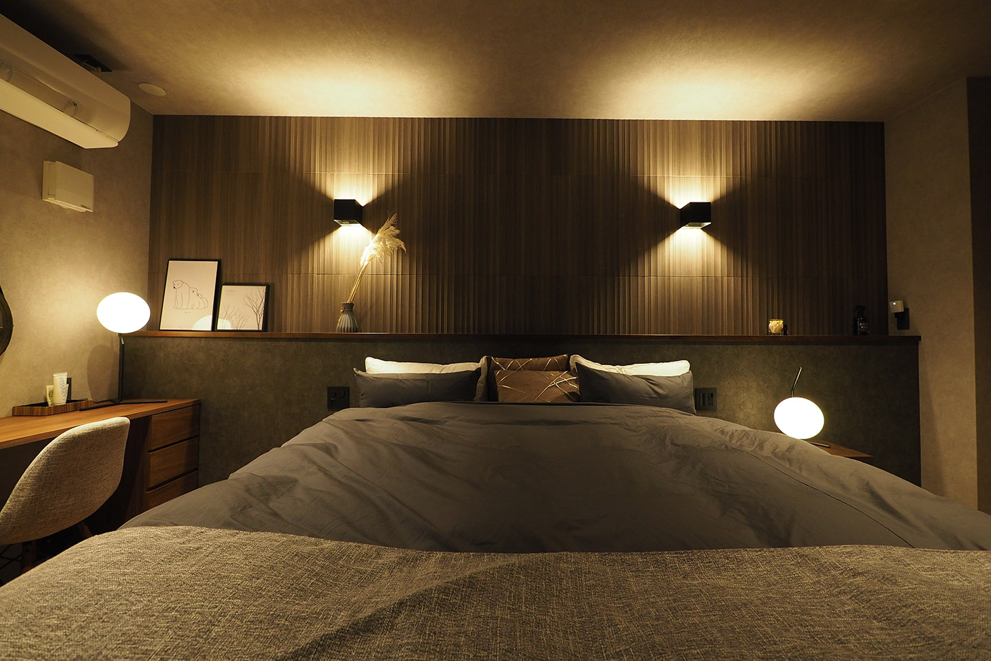 インテリア発見ブログvol.246 「ふかし壁」で演出するおしゃれ空間ホテルライクな寝室インテリアコーディネート例インテリア発見ブログ。
