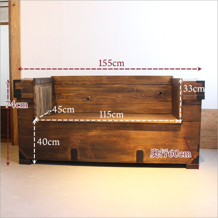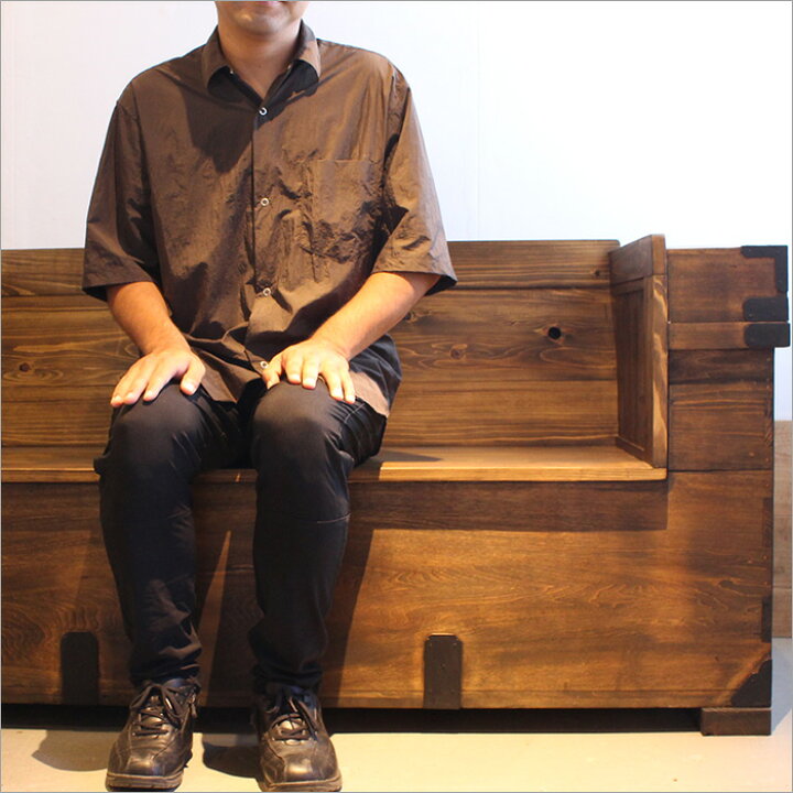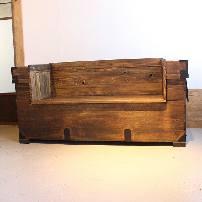 楽天市場 嫁入り道具長持をソファにリメイク 2人掛け 古材 古木 2P 2シーター アンティーク 家具 リビング 木製 無垢材 和モダン 和室 和風昭和レトロ 旅館 和 古民具 古家具 リメイク ディスプレイ カフェ 古民家 インテリア : 古民具・古材再生プロジェクト和人。